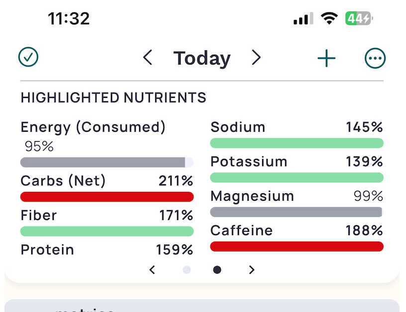 highlighted nutrients not showing