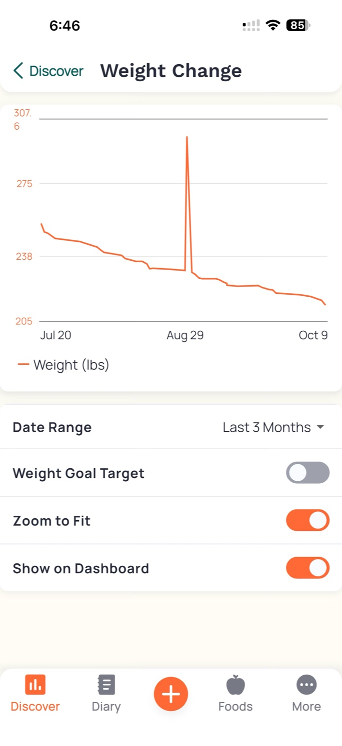 - Open Discover → Weight Change (or diary) in Cronometer.