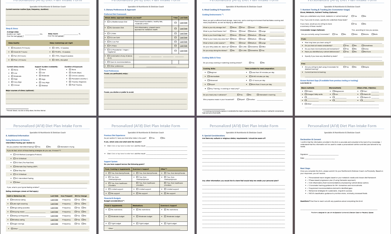 Self-Survey: Imagine if you went to a Nutritionist - Intake Form (Template, PNG, Idea Only)
