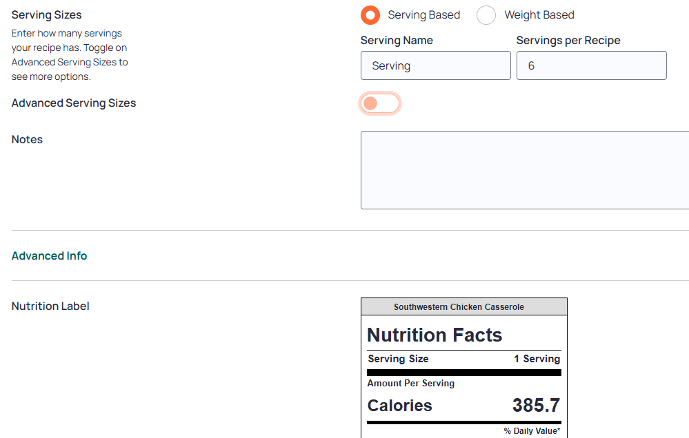 I set the serving size for the recipe under serving based but every time I come back to the recipe the label lists the serving size as 1 full recipe.