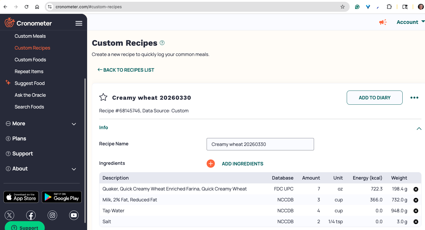 For example, I made a "Creamy Wheat" custom recipe which has a code listed as: